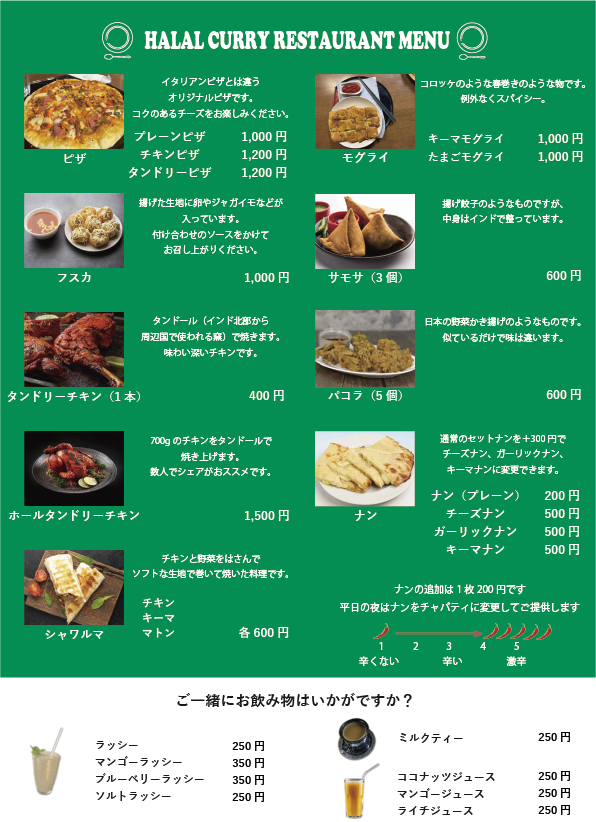 HALALCURRYのメニューのご紹介